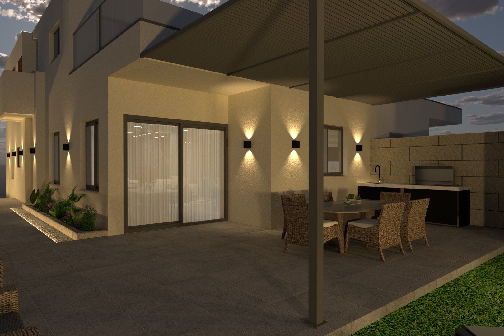 קומפלקס חדש ויוקרתי של קוטג'ים בגני אביב. הבנייה החלה לפני כשנתיים, וסוף סוף הגענו לגמרים: תכנון תאורה, תכנון ועיצוב גינה, תכנון מטבח בצבע ירוק בקבוק. בפרוייקט ישנה נגרות מאוד מיוחדת: ארון סלון עם קמין חשמלי מובנה, מקום לטלוויזיה ורמקול איכותי. הכל תוכנן בסטודיו M-Design. פרוייקט מיוחד, אסיסי וצבעוני