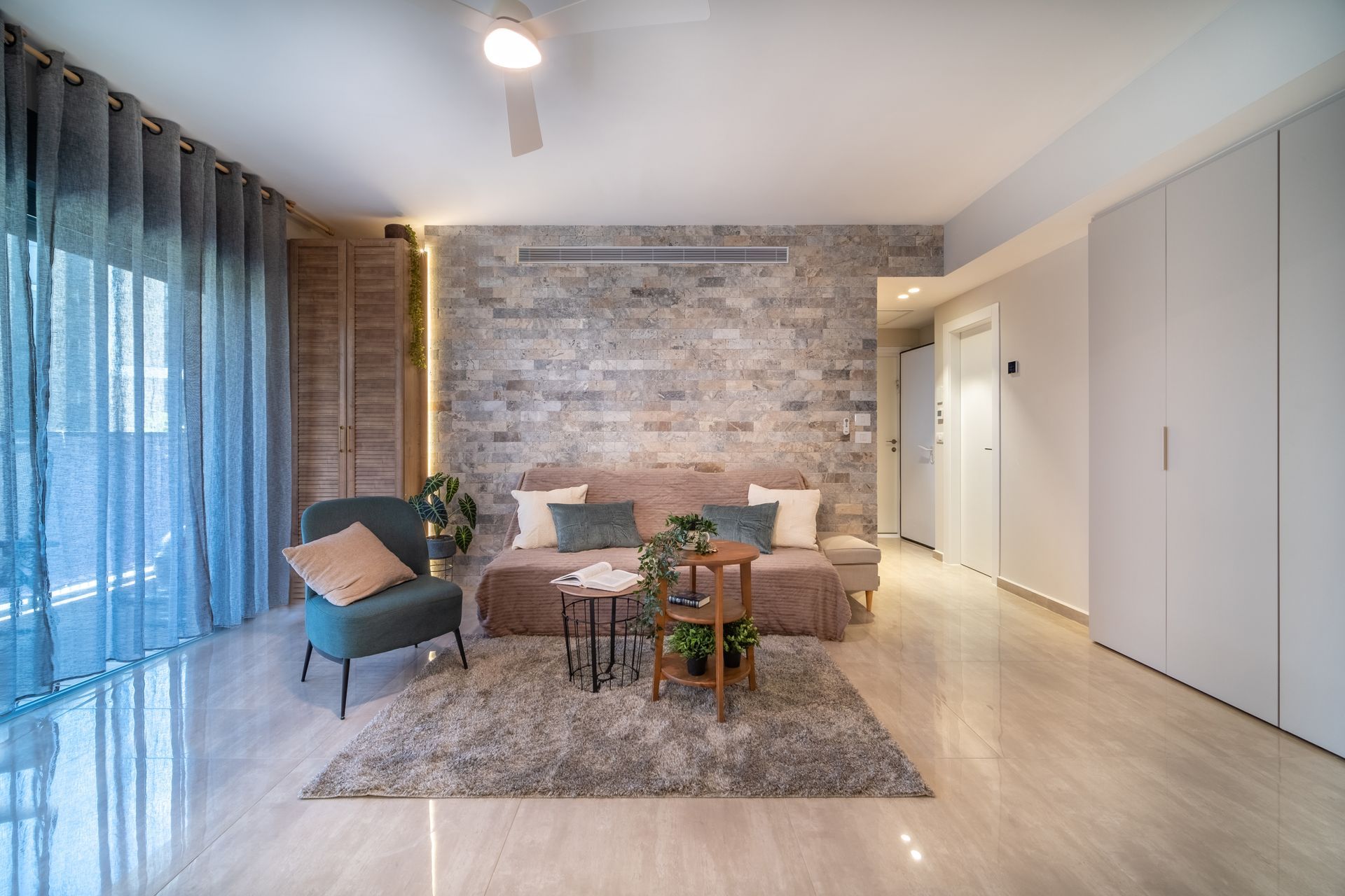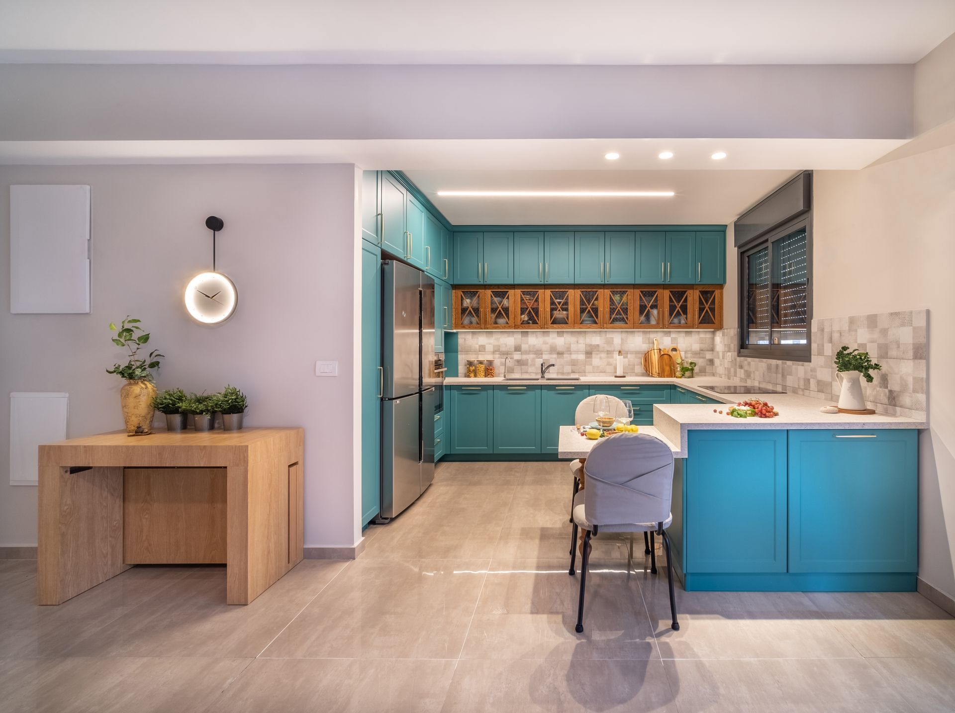 הדירה תוכננה עבור זוג מקסים שילדיהם עזבו את הקן. החלטתי על סגנון עיצוב ים תיכוני, עם נגיעות איטלקיות. קיר הבריקים, והמטבח המיוחד תורמים לכך. מעט אקלקטיות, ריהוט שכאילו הגיע ממקורות שונים - כל אלה אופייניים לבתים כפריים אוטנטיים.