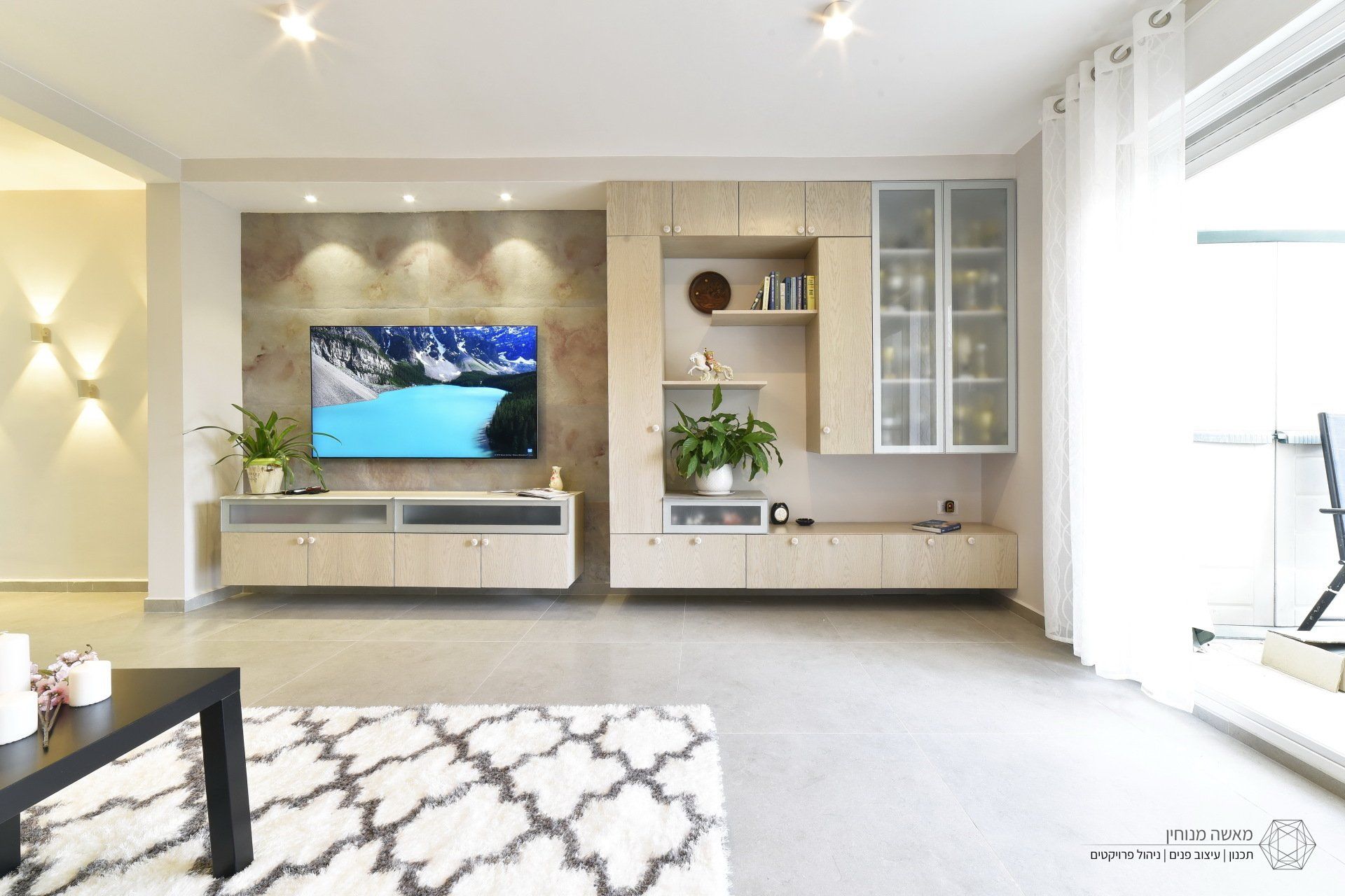 עשינו הפרדה של חלל הסלון שהפך להיות נוח ומואר. כל הריהוט בוצע בהזמנה אישית לפי השרטוטים והסקיצות שלי.