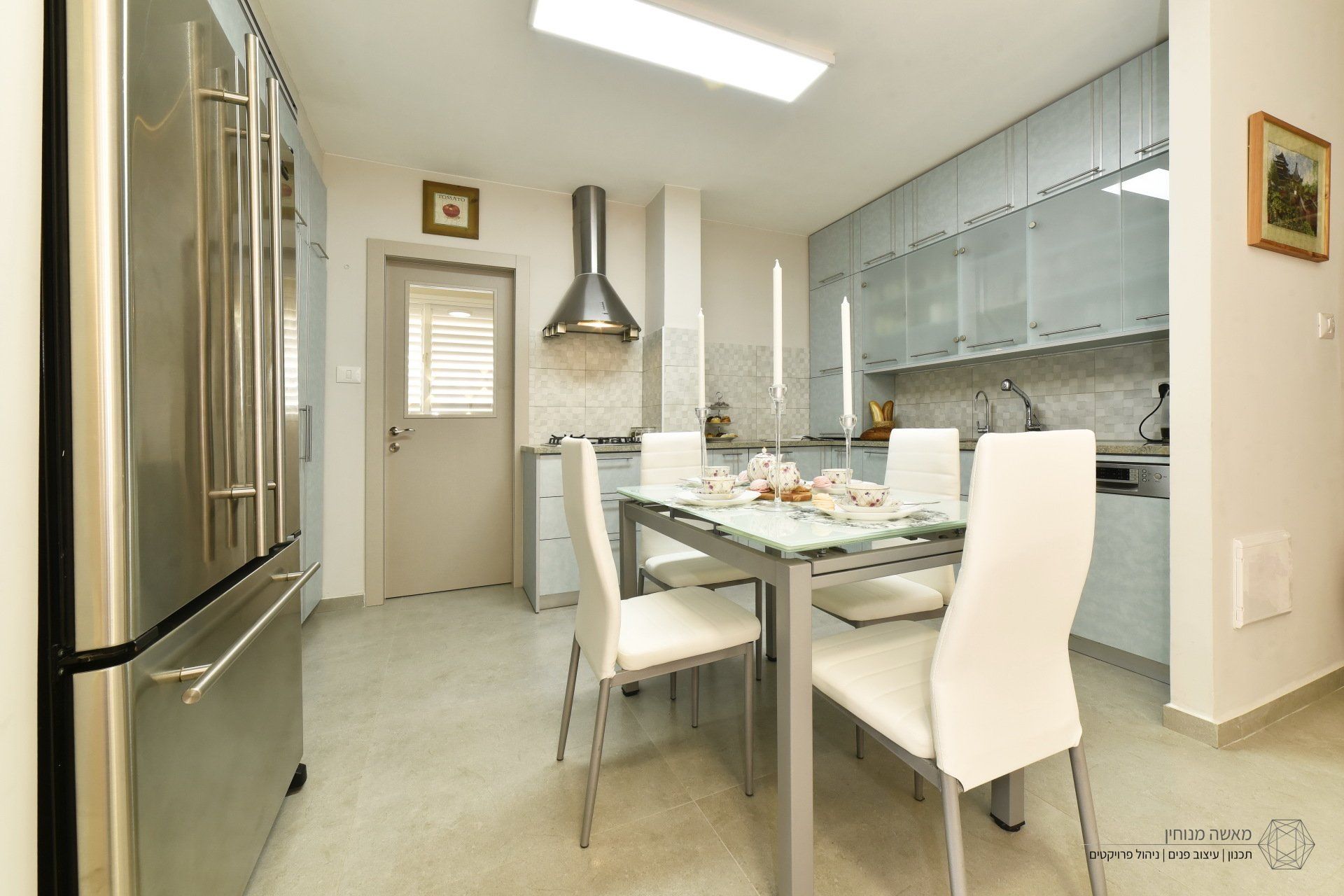 הגדלנו את המטבח והכנסנו שולחן אוכל שהיה כל כך חסר לבעלי הבית שאוהבים לארח על כוס קפה משובח.